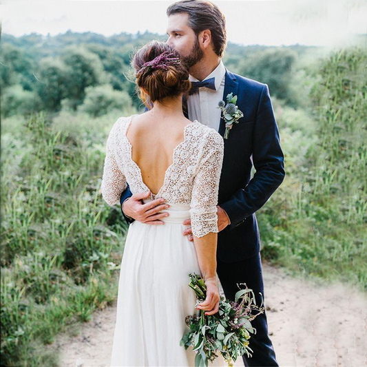 A Line Chiffon Long Sleeves V Neck Lace Beach Wedding Dress