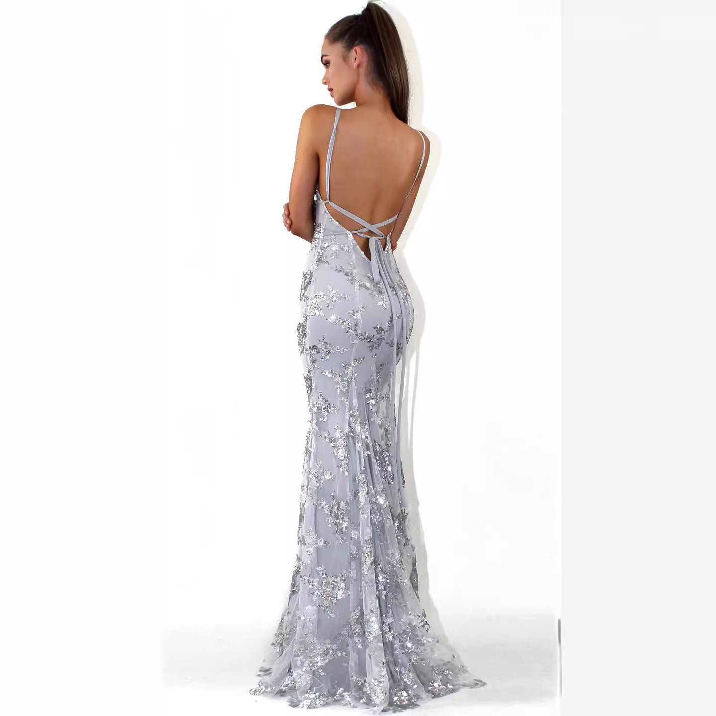 Sparkly Sequin V-neck Mermaid Prom Dress