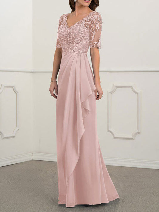 Pink Lace V-Neck Short Sleeves A-Line Bridesmaid DressRegular price £111.38Regular priceUnit price / per£0.00Sale price £111.38