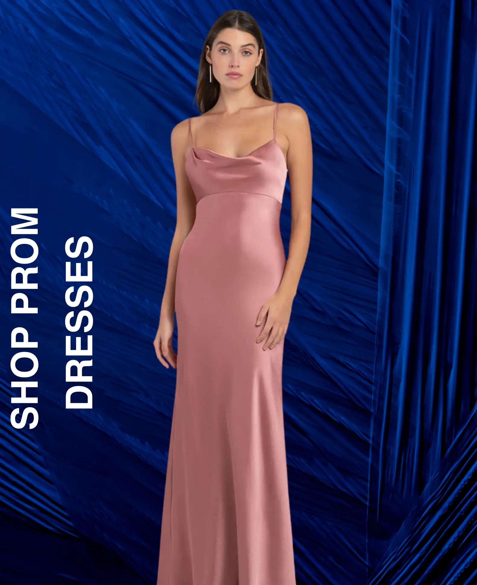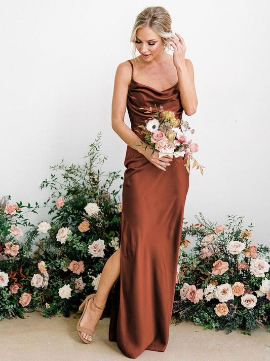 Satin Cowl Neck Printed Tea-length Split Front Bridesmaid DressRegular price £69.99Regular priceUnit price / per£125.00Sale price £69.99Save [%]