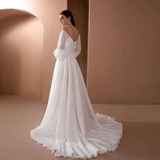 A-Line Bateau Neck Long Sleeves Backless Brush Train Wedding DressRegular price £115.00Regular priceUnit price / per£185.00Sale price £115.00Save [%]